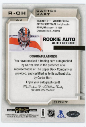 2018-19 O-Pee-Chee Platinum Carter Hart Rookie Autograph