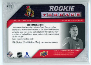 2021-22 Upper Deck #RT-BT Brady Tkachuk Rookie Threads Retro Flashback