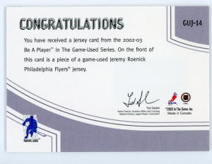 2002-03 In the Game #GUJ-14 Jeremy Roenick Jersey 1 of 75