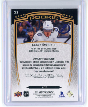 2024-25 UD Stature #33 Conor Geekie Rookie Autograph