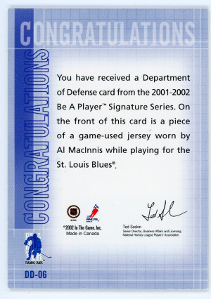 2001-02 BAP Signature Al MacInnis Department of Defense Jersey 1 of 40