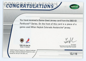 2002-03 Parkhurst #GJ-16 Milan Hejduk Jersey 1 of 90