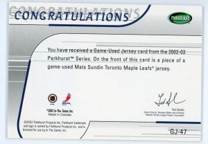 2002-03 Parkhurst #GJ-47 Mats Sundin Jersey 1 of 90