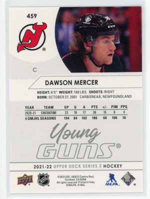 2021-22 Upper Deck #459 Dawson Mercer Young Guns