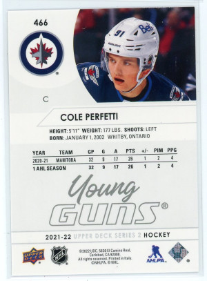 2021-22 Upper Deck #466 Cole Perfetti Young Guns