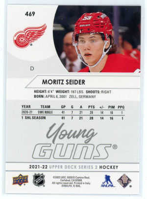 2021-22 Upper Deck #469 Moritz Seider Young Guns