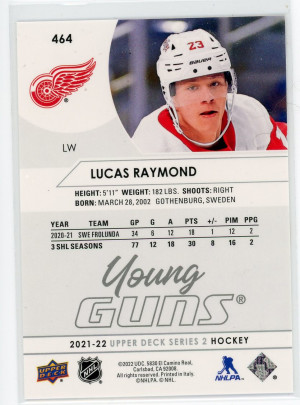 2021-22 Upper Deck #464 Lucas Raymond Young Guns