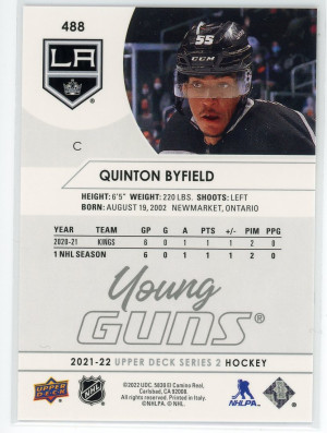 2021-22 Upper Deck #488 Quinton Byfield Young Guns