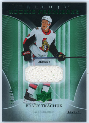 2018-19 Upper Deck Trilogy Brady Tkachuk Rookie Jersey Green /499