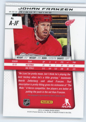 2013-14 Panini Prizm Johan Franzen Autograph SP