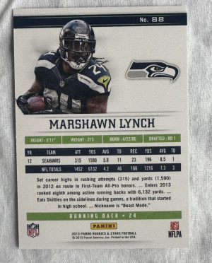 2013 Panini Rookies & Stars #88 2/10 Marshawn Lynch Seattle Seahawks