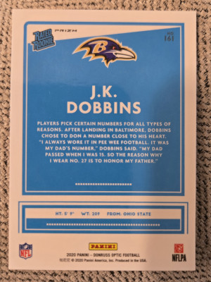 JK Dobbins Donruss Optic Rated Rookie Silver Holo