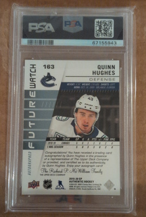 2019 Sp Authentic Quinn Hughes Autograph