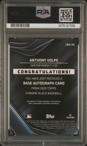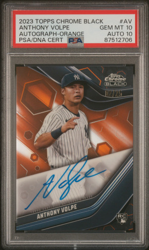 2023 Topps Chrome Black Autographs Anthony Volpe Orange Refractor 02/25 RC PSA 10 | Auto 10