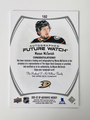 2022 Upper Deck SP Authentic Future Watch Auto Mason McTavish Rookie 484/999