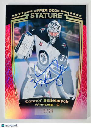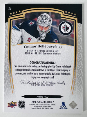 2025 Upper Deck Stature Connor Hellebuyck Auto Red 13/99