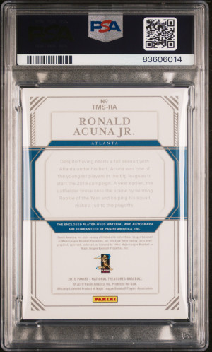 2019 Panini National Treasures /5 Treasured Material Signatures Ronald Acuna Jr. Holo Gold