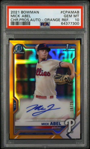 2021 Bowman Chrome Prospect Autographs Mick Abel Chr.pros.auto-Orange Ref. /25