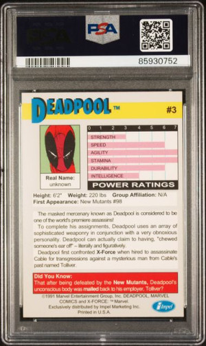 1991 Impel X-Force Promo Card 3 Deadpool PSA 9