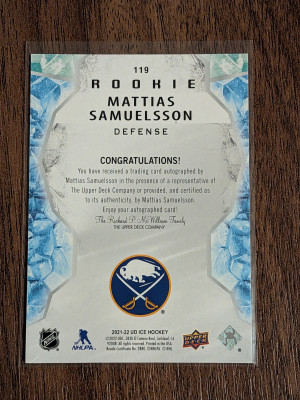 2021 Upper Deck Ice #119 Mattias Samuelsson Auto Rookie on card auto