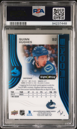 2019 Upper Deck Synergy Quinn Hughes Blue
