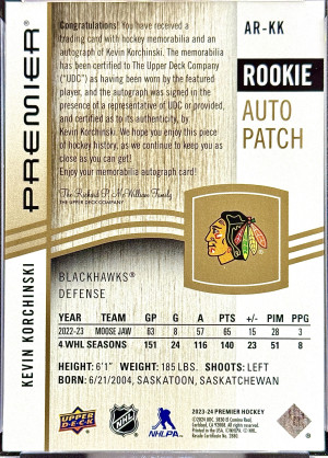 Kevin Korchinski 2023-24 Premier Gold Acetate Rookie Auto Patch 12/35