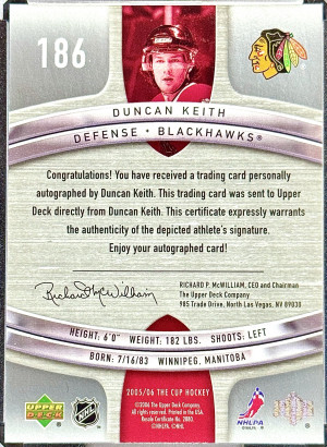 Duncan Keith 2005-06 The Cup Rookie Auto 083/249