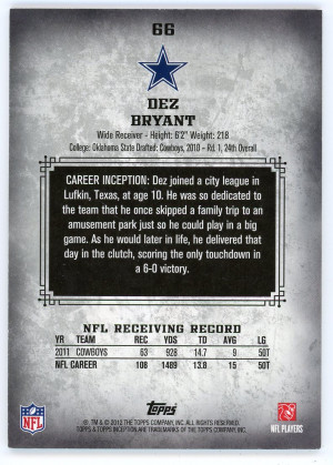 2012 Topps Inception #66 Dez Bryant Green 60/75