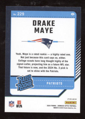 2024 Panini Donruss Optic Drake Maye #229 Blue Glitter