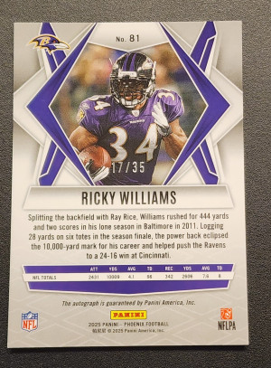2025 Panini Phoenix Holiday Ricky Williams Autographed #17/35