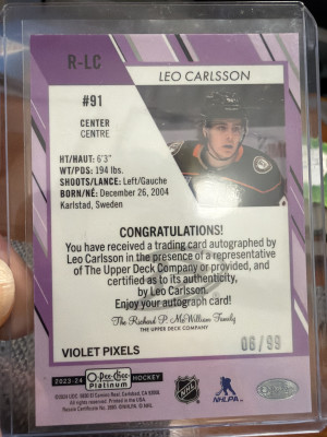 2023 Leo Carlsson OPC Platinum Violet Pixels /99