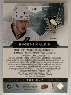 Evgeni Malkin 2014-15 Upper Deck The Cup Gold Auto 3 Color Patch /10