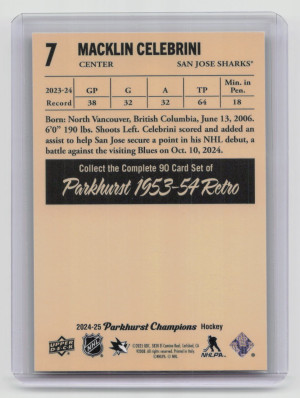 2025 Upper Deck Parkhurst Champions 1953-54 Retro Macklin Celebrini #7 Rookie