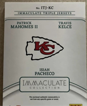 2024 Immaculate Patrick Mahomes/Travis Kelce/Isiah Pacheco Triple Jersey 31 /49
