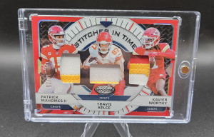 2024 Panini Certified Mahomes/Kelce/Worthy Stitches In Time