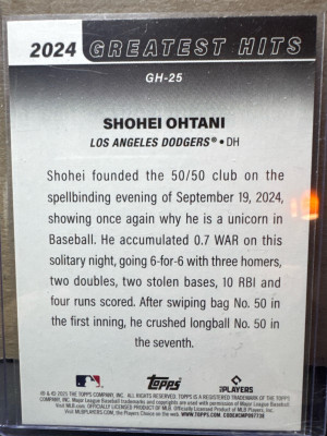 2025 Topps Series 1 2024 Greatest Hits Shohei Ohtani #GH-25 Los Angeles Dodgers