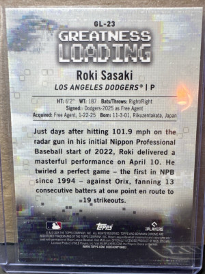 2025 Bowman #GL-23 Roki Sasaki Greatness Loading