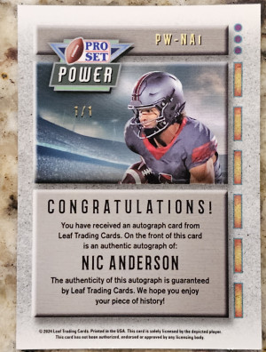 2024 Pro Set Metal Nic Anderson Power Super Prismatic Gold 1/1 #PW-NA1 Auto