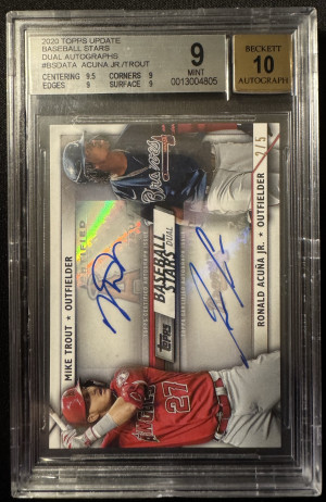 2020 Topps Update Baseball Stars Ronald Acuna Jr. Mike Trout Dual Auto /5 BGS 9 Auto 10