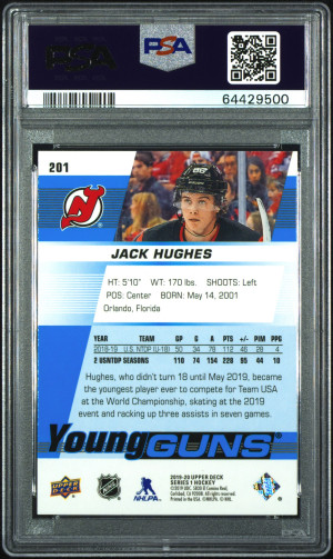 2019 Upper Deck Jack Hughes Young Guns Rookie PSA 10