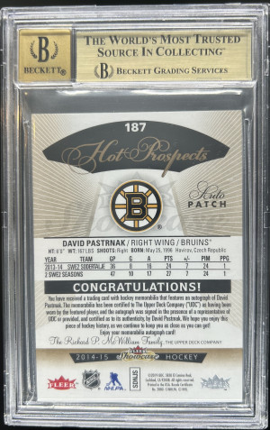 2014-15 Fleer Showcase David Pastrnak Hot Prospects Rookie Patch Auto /175