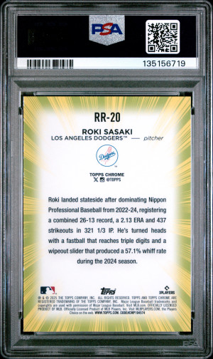 2025 Topps Chrome Radiating Rookies Roki Sasaki PSA 10 Rookie