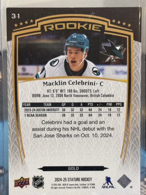 2024-25 Stature Macklin Celebrini Gold /50 Rookie