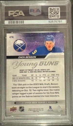 2023 Upper Deck Zach Benson Young Guns PSA 10 Gem Mint