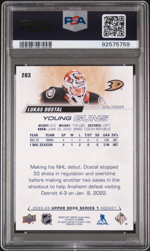 2022 Upper Deck 203 Lukas Dostal Young Guns PSA 10 Gem Mint
