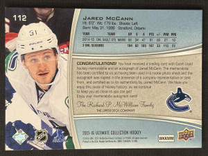 2015-16 Upper Deck Ultimate Collection Ultimate Rookies Autographed Patch 03/10 #112 Jared McCann