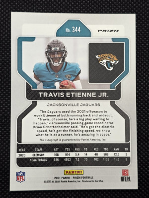 2021 Panini Prizm Travis Etienne No Huddle RC Auto Jaguars