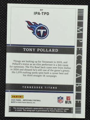 2025 Panini Impeccable Tony Pollard Immense 2 Color Patch Auto /99 #IPA-TPD