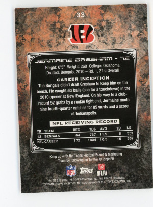 2013 Topps Inception #33 Jermaine Gresham Yellow 34/75