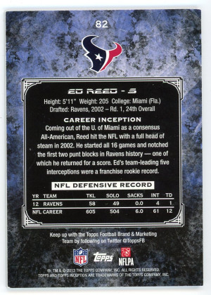 2013 Topps Inception #82 Ed Reed Green 85/199